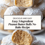 Keywords: peanut butter balls, no bake dessert, easy peanut butter recipe, 3 ingredient dessert, no bake snack, peanut butter treats, party snacks, quick dessert
