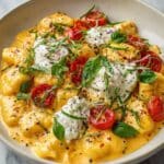 This 30 Minute Creamy Tomato Gnocchi with Burrata is a comforting and elegant dish perfect for busy weeknights or casual dinner parties. The rich tomato sauce melds beautifully with pillowy gnocchi and creamy burrata, making every bite a delight.