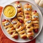 Keywords: hot dog mummies, Halloween snacks, crescent roll hot dogs, kid-friendly appetizers, easy party food