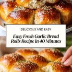 These Amazing Fresh Garlic Bread Rolls are soft, fluffy, and bursting with garlic and herb flavors. Perfectly golden-baked and brushed with a fragrant garlic butter and parsley topping, they make an irresistible side for any meal or a savory snack on their own. Easy to prepare in under an hour, these rolls will fill your kitchen with a delightful aroma and impress your family and guests.