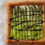 A delicious and elegant Asparagus Gruyere Tart combining flaky puff pastry with creamy Gruyere cheese, fresh asparagus, and a hint of honey dijon mustard. Perfect for a light lunch, brunch, or appetizer, finished with lemon zest, balsamic glaze, and fresh pea shoots for a fresh, vibrant flavor.