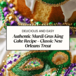 Keywords: Mardi Gras King Cake, New Orleans King Cake, Traditional King Cake, Southern Mardi Gras Dessert, Cinnamon Filled Cake, Festive Cake