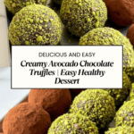 These creamy avocado truffles combine the rich decadence of semi-sweet chocolate with the smooth texture of ripe avocado for a healthier twist on a classic treat. Perfectly bite-sized and coated in cocoa or pistachios, they make a delightful snack or dessert to impress your guests.