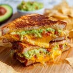 Discover the perfect blend of creamy guacamole, crispy bacon, and melted cheese in this Bacon Guacamole Grilled Cheese Sandwich. Toasted to golden perfection with a buttery crust and a delightful crunch from tortilla chips, it’s a comforting twist on a classic favorite.
