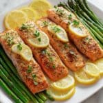 - Serve: Remove from the oven and let the salmon rest for a few minutes. Serve the salmon and asparagus warm with lemon wedges for an extra burst of fresh flavor.