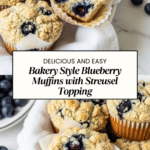 Keywords: blueberry muffins, bakery style muffins, streusel topping, breakfast muffins, homemade muffins, easy muffin recipe