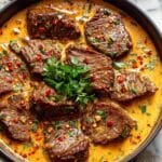 This Beef in Creamy Paprika Sauce is a rich and comforting dish perfect for a cozy dinner. Tender strips of beef are cooked in a luscious sauce made with paprika, cream, and a touch of mustard for depth. It pairs beautifully with noodles, rice, or mashed potatoes.