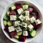A vibrant and refreshing Beet Salad featuring tender roasted or steamed beets, crisp cucumbers, tangy crumbled feta, and fragrant fresh dill, all brought together with a zesty olive oil and red wine vinegar dressing. This easy-to-make salad is perfect as a light lunch or a colorful side dish.