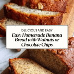 This easy banana bread recipe is a classic favorite that’s moist, flavorful, and perfect for using up ripe bananas. With a subtle hint of cinnamon and a lovely crunch from walnuts or chocolate chips, it makes a delicious snack or breakfast treat.