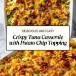 This tuna casserole is a comforting, nostalgic dish that’s perfect for busy weeknights. Packed with creamy mushroom soup, tender noodles, and crunchy potato chips on top, it’s a crowd-pleaser that even picky eaters love.
