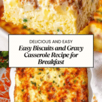 Keywords: Biscuits and Gravy Casserole, breakfast casserole, sausage gravy casserole, cheesy breakfast bake, easy brunch recipe