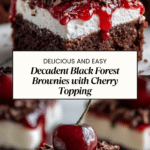 Black Forest Brownies are a delightful twist on classic brownies, layered with rich chocolate, cherry topping, and stabilized whipped cream. This recipe combines fudgy brownies with a luscious cherry sauce and creamy frosting, perfect for any occasion.