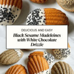 Black sesame madeleines are elegant, delicate French butter cakes infused with the nutty flavor of black sesame. These bite-sized treats combine a tender crumb with a subtle crunch from roasted sesame seeds and a touch of white chocolate for added richness.