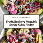 A fresh and vibrant Blueberry Pistachio Spring Salad combining crisp spring mix and butter lettuce with sweet blueberries, crunchy candied pistachios, creamy avocado, tangy pomegranate arils, and salty feta cheese, all brought together with a luscious creamy pomegranate dressing. Perfect as a light lunch or a colorful side dish.