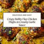 Keywords: Bobby Flay, chicken thighs, creamy garlic sauce, skillet recipe, crispy chicken, weeknight dinner, easy chicken recipe