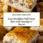 These Breakfast Puff Pastry Bars combine savory sausage gravy, crispy hash browns, melted cheese, and smoky bacon all encased in flaky puff pastry. Perfect for a hearty brunch or a make-ahead breakfast treat, these bars are baked to golden perfection with a rich egg wash that gives a beautiful shine. Crispy on the outside and flavorful inside, they are sure to be a crowd-pleaser.