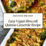 Keywords: broccoli casserole, quinoa casserole, vegan casserole, gluten-free casserole, healthy dinner, plant-based recipe, dairy-free cheese, chickpea casserole