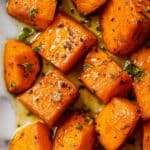 Deliciously sweet and savory brown sugar roasted sweet potatoes, perfect as a comforting side dish. Tender sweet potato chunks are coated with a buttery maple and brown sugar glaze, then roasted to caramelized perfection with hints of smoked paprika and garlic powder.