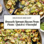 Keywords: Brussels sprouts pasta, bacon pesto pasta, easy pasta recipe, quick dinner, vegetable pasta, bacon pasta dish