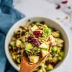 This Brussels Sprouts Cranberry Salad combines the crunch of sautéed Brussels sprouts with the tartness of homemade dried cranberries, complemented by walnuts, apple, and sunflower seeds for a refreshing and nutritious dish perfect for any season.