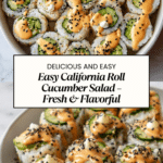 Love the flavors of sushi but not the hassle of rolling it up? This California Roll Cucumber Salad captures everything you love—cool cucumber, creamy avocado, sweet crab (or imitation crab), and a tangy sesame-soy dressing—all in a fresh, crunchy bowl. It’s light, refreshing, and incredibly satisfying, perfect for a quick meal or appetizer.
