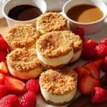 Delicious and easy-to-make Cheesecake Sandwiches featuring a buttery graham cracker crust and smooth cream cheese filling, baked to perfection in a silicone mold. Perfect for a delightful dessert treat with endless topping options like strawberry, caramel, raspberry, or chocolate syrup.