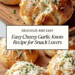 Keywords: cheesy garlic knots, garlic knots recipe, easy appetizer, pizza dough snack, cheesy bread knots
