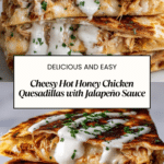 Keywords: cheesy chicken quesadillas, hot honey chicken, jalapeño cream sauce, American dinner, spicy quesadilla recipe