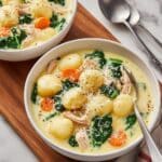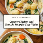 Keywords: chicken gnocchi soup, creamy chicken soup, spring soup recipe, comforting soup, easy chicken soup, spinach soup, chicken broth soup