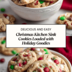 These Christmas Kitchen Sink Cookies are a festive treat packed with a delightful mix of flavors and textures. Loaded with chocolate chips, pretzels, colorful candies, coconut, and nuts, they’re perfect for holiday gatherings or a cozy winter snack.
