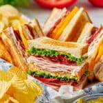 Club sandwiches are best enjoyed fresh to maintain crisp textures. If you need to store leftovers, wrap the sandwich tightly in plastic wrap and refrigerate for up to 24 hours. To reheat, unwrap the sandwich and warm it briefly in a toaster oven or conventional oven to keep the bread crispy—avoid microwaving as it may make the bread soggy.