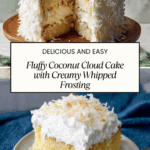 Keywords: coconut cake, cloud cake, white cake, coconut whipped cream frosting, cream of coconut, moist cake, coconut dessert
