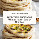 This Cottage Cheese Garlic Naan recipe is a high-protein, no-yeast alternative to traditional naan bread. Made with a blend of cottage cheese, eggs, and flours, it offers a soft and flavorful naan infused with garlic and finished with buttery herbs, perfect for pairing with Indian dishes or enjoying as a snack.