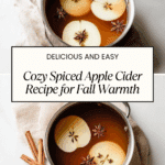 Keywords: spiced apple cider, warm cider recipe, fall drink, holiday beverage, cinnamon apple cider