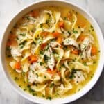 This creamy chicken noodle soup is a comforting, velvety delight perfect for chilly days. Thickened with a blonde roux and enriched with heavy cream, it offers rich flavors and tender noodles in every spoonful.