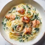 This Creamy Smoked Salmon Carbonara is a delightful twist on the classic Italian dish, combining the rich flavors of smoked salmon, fresh spinach, and a velvety Parmesan cream sauce. Perfectly cooked pasta is tossed in a luscious sauce made from eggs, heavy cream, and cheese, making an elegant and quick dinner option that’s both comforting and sophisticated.