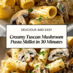 Keywords: Creamy Tuscan Mushroom Pasta, Mushroom Pasta Skillet, Creamy Mushroom Pasta, Vegetarian Pasta, Weeknight Pasta Dinner, Tuscan Pasta Skillet