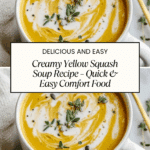 This creamy yellow squash soup is a quick and easy recipe that combines tender yellow squash, aromatic onions, and garlic in a smooth, velvety broth. Perfect for a comforting meal, it’s enhanced with a touch of heavy cream or coconut cream and can be garnished with sour cream or fresh thyme for extra flavor.