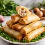 Crispy Classic Chinese Egg Rolls are a delicious appetizer featuring a savory filling of ground pork, cabbage, carrots, shiitake mushrooms, and aromatic seasonings, all wrapped in a thin egg roll wrapper and deep-fried to golden perfection. Perfect for parties or a tasty snack, these egg rolls combine a flavorful filling with a crunchy exterior that pairs beautifully with dipping sauces like sweet and sour or duck sauce.