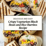 These Crispy Vegetarian Black Bean and Rice Burritos are a quick and delicious meal perfect for any day of the week. Packed with seasoned black beans, fresh vegetables, melted cheese, and optional rice, these burritos deliver a satisfying crunch and flavorful bite with every crispy skillet toast. Easy to prepare in under 15 minutes, they make a great meatless option that’s perfect for lunch or dinner.