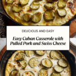 This Cuban Casserole is a rich, comforting dish combining tender pulled pork, savory ham, and creamy Swiss cheese in a tangy mustard sauce with dill pickles for a unique Cuban-inspired flavor. Baked until bubbly and golden, this hearty casserole serves as a perfect meal for family gatherings or casual dinners.