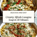 Decadent Creamy Alfredo Lasagna Soup is a rich and comforting soup that beautifully blends the classic flavors of lasagna with a creamy Alfredo sauce twist. This hearty soup features ground Italian sausage, tender lasagna noodles, fresh spinach, and a luscious cream and Parmesan cheese base, making it perfect for a cozy dinner that can be prepared in just 30 minutes.