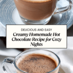 This decadent hot chocolate recipe is a simple and comforting treat perfect for chilly days. Made with rich cocoa and creamy milk, it delivers a velvety smooth taste that’s easy to make at home. Top it with whipped cream for an indulgent finish.