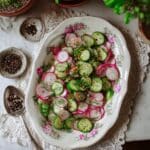 This Dewy Dill Delight Radish and Cucumber Salad is a refreshing and vibrant side dish perfect for warm days. Crisp cucumbers and peppery radishes combine with a tangy, honey-mustard dressing and fresh herbs to create a simple yet flavorful salad.