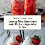 Dirty strawberry soda is a playful and vibrant mocktail that combines the sweetness of strawberry soda with the smooth creaminess of vanilla coffee creamer. This refreshing drink is perfect for spring and summer, offering a beautiful balance of sweet and creamy flavors that delight both kids and adults alike.