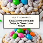 Easter Bunny Chow is a festive and delicious dessert snack featuring a delightful combination of creamy peanut butter, milk chocolate, crunchy Chex cereal, and colorful Easter-themed M&Ms and sprinkles. This sweet treat is perfect for celebrating spring holidays and sharing with family and friends.