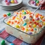 - Garnish and Serve: Before serving, top the salad with sweetened flaked coconut, pastel sprinkles, or Easter M&M’s for a colorful, festive presentation. Serve chilled and enjoy!