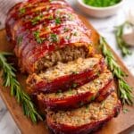 This easy bacon-wrapped meatloaf is a delicious twist on a classic comfort food. Juicy ground beef is mixed with flavorful ingredients, wrapped in a crispy bacon weave, and glazed for a perfect savory finish. It’s sure to be a hit for family dinners or gatherings.