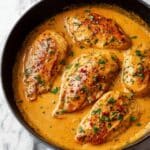 - Serve: Plate the chicken cutlets, spoon the creamy sauce over the top, and garnish with freshly chopped parsley if desired. Serve immediately.