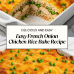 This Easy French Onion Chicken Rice Bake combines creamy French onion dip, tender shredded chicken, and delicious melted cheese for a comforting one-dish meal. Ready in just 35 minutes, it’s perfect for a quick weeknight dinner that the whole family will enjoy.